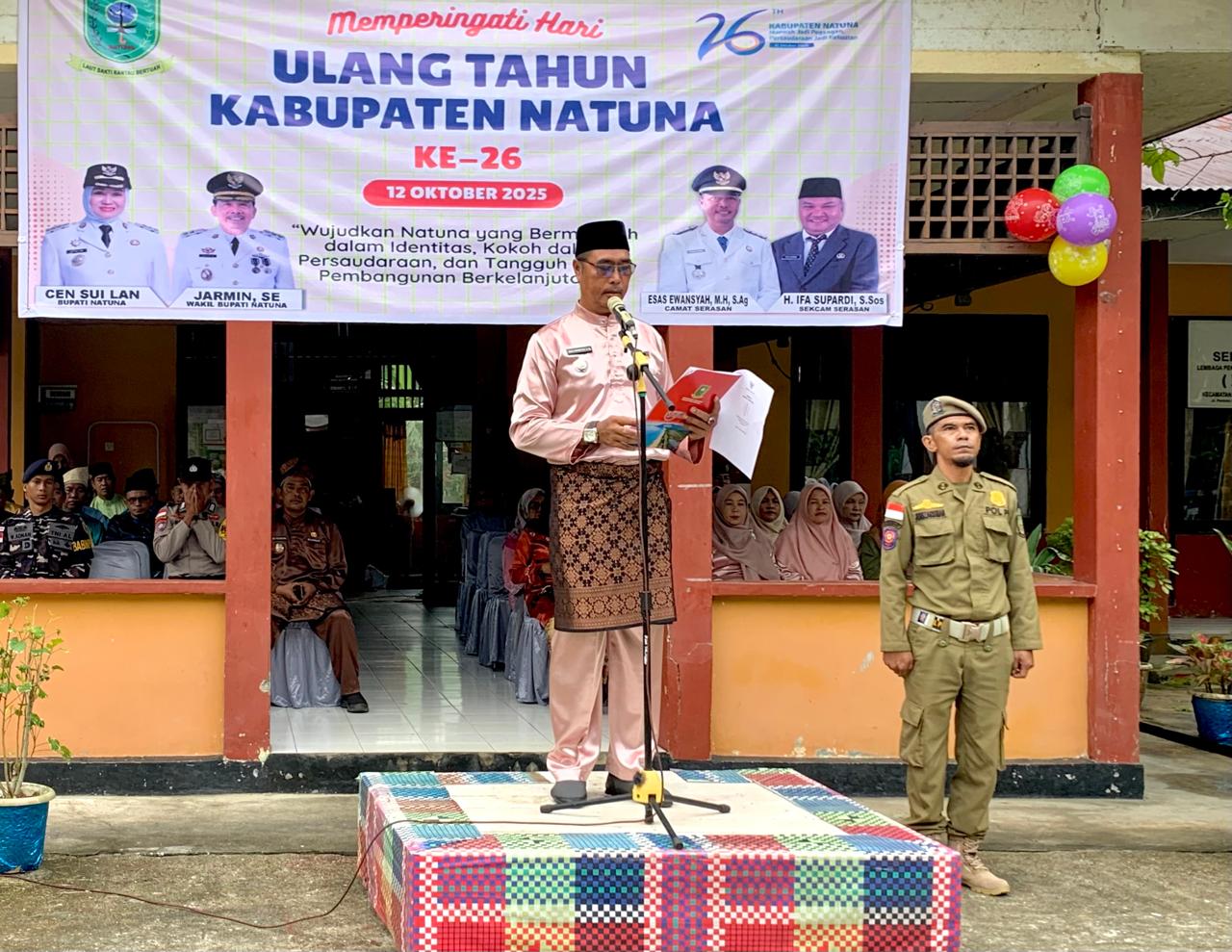 Kecamatan Serasan melaksanakan upacara peringatan Hari Ulang Tahun ke-26 Kabupaten Natuna pada Minggu, 12 Oktober 2025 di Halaman Kantor Kecamatan Serasan.